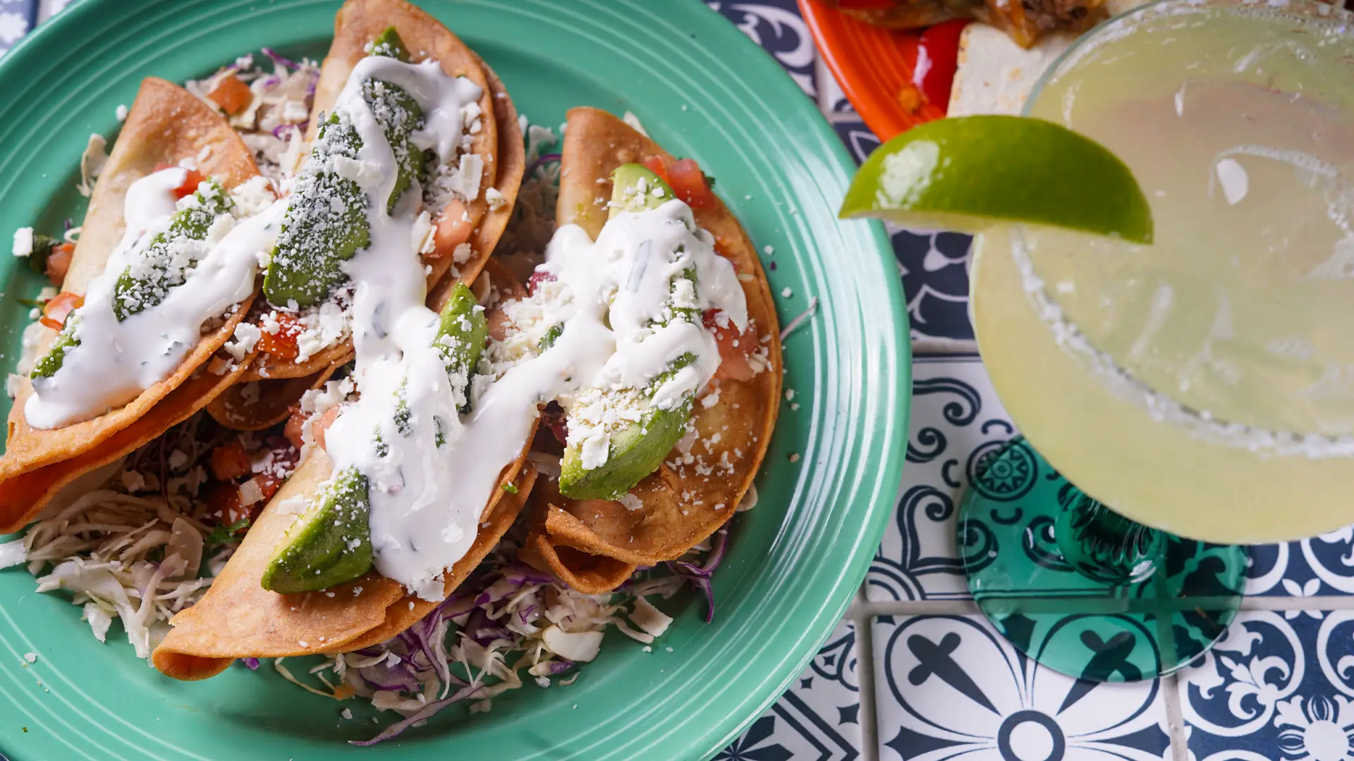What a fun, cozy place. The Margaritas, taco salad, enchiladas, and French tacos were delicious. The table side guacamole is my fave. The manager checked in with all diners making sure they were having an enjoyable meal. There's lots of parking because it's in a small strip mall. Inside the decor is bright and vibrant. Great food and great atmosphere.